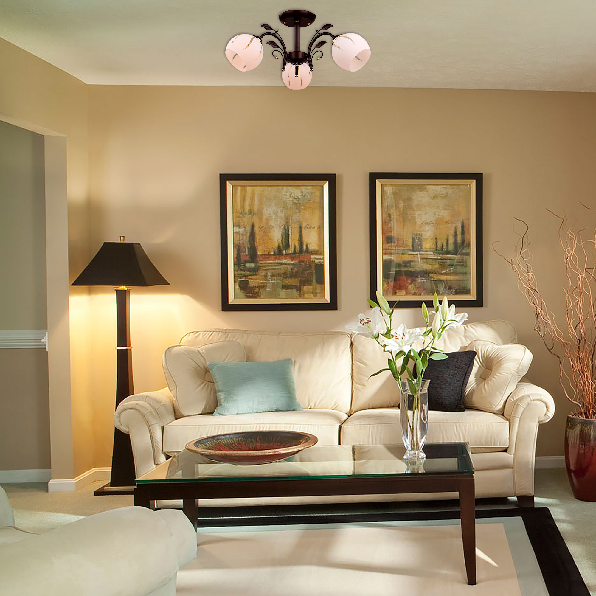 Примерная площадь освещаемая люстрой9 кв.м.