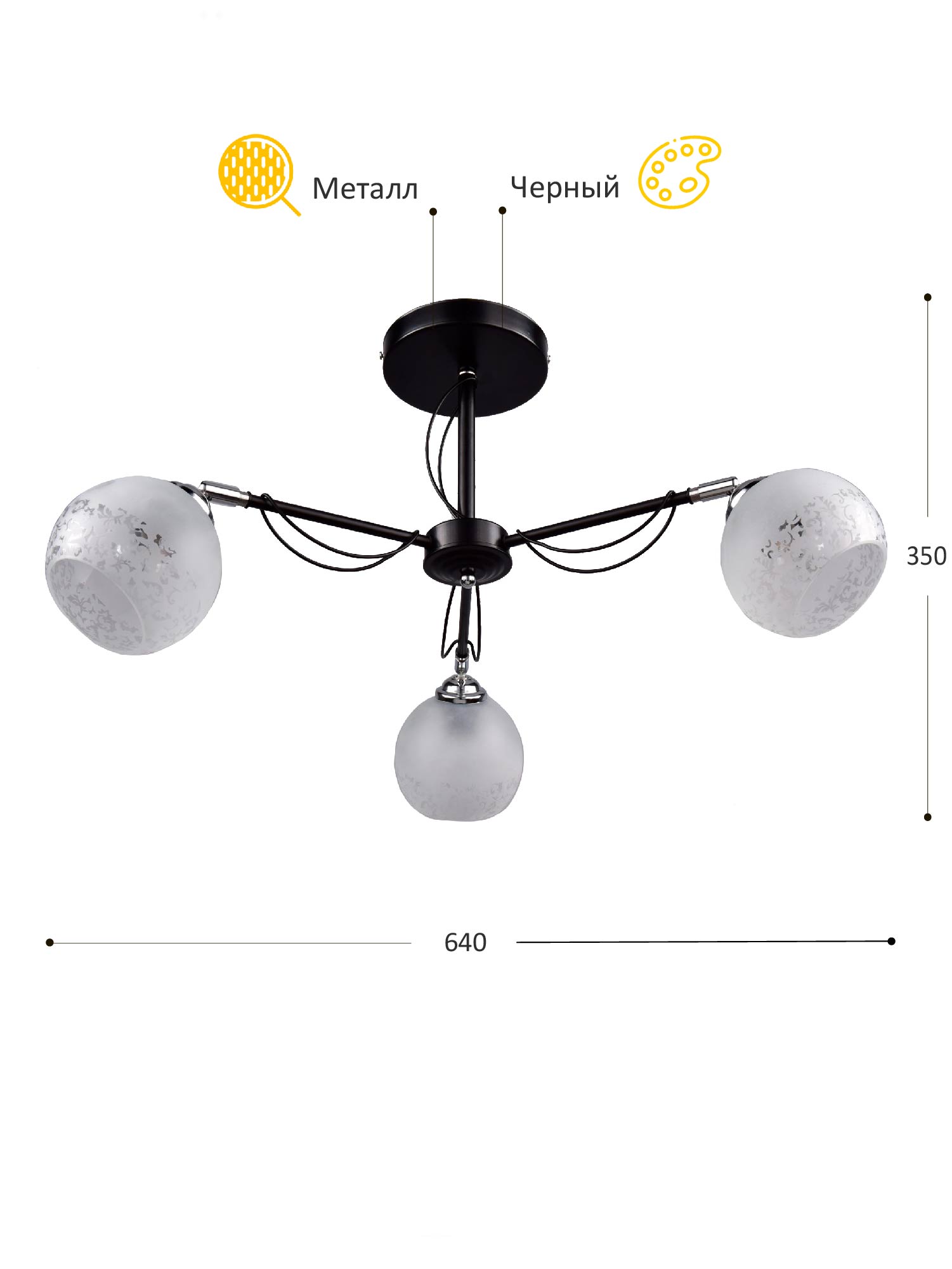 Размеры (высота с цепью и без, радиус\длина, ширина)350x640x640