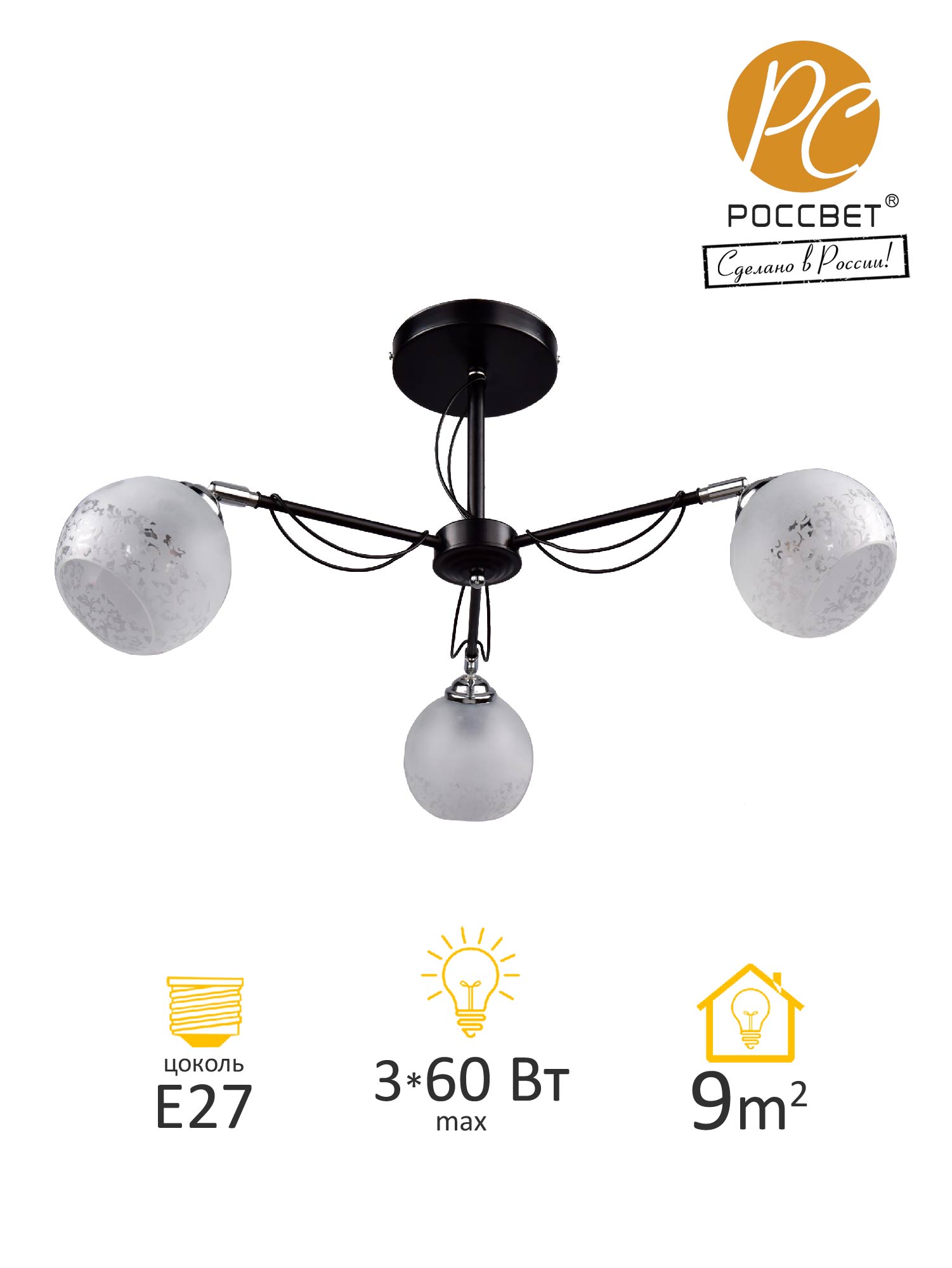 Примерная площадь освещаемая люстрой9 кв.м.